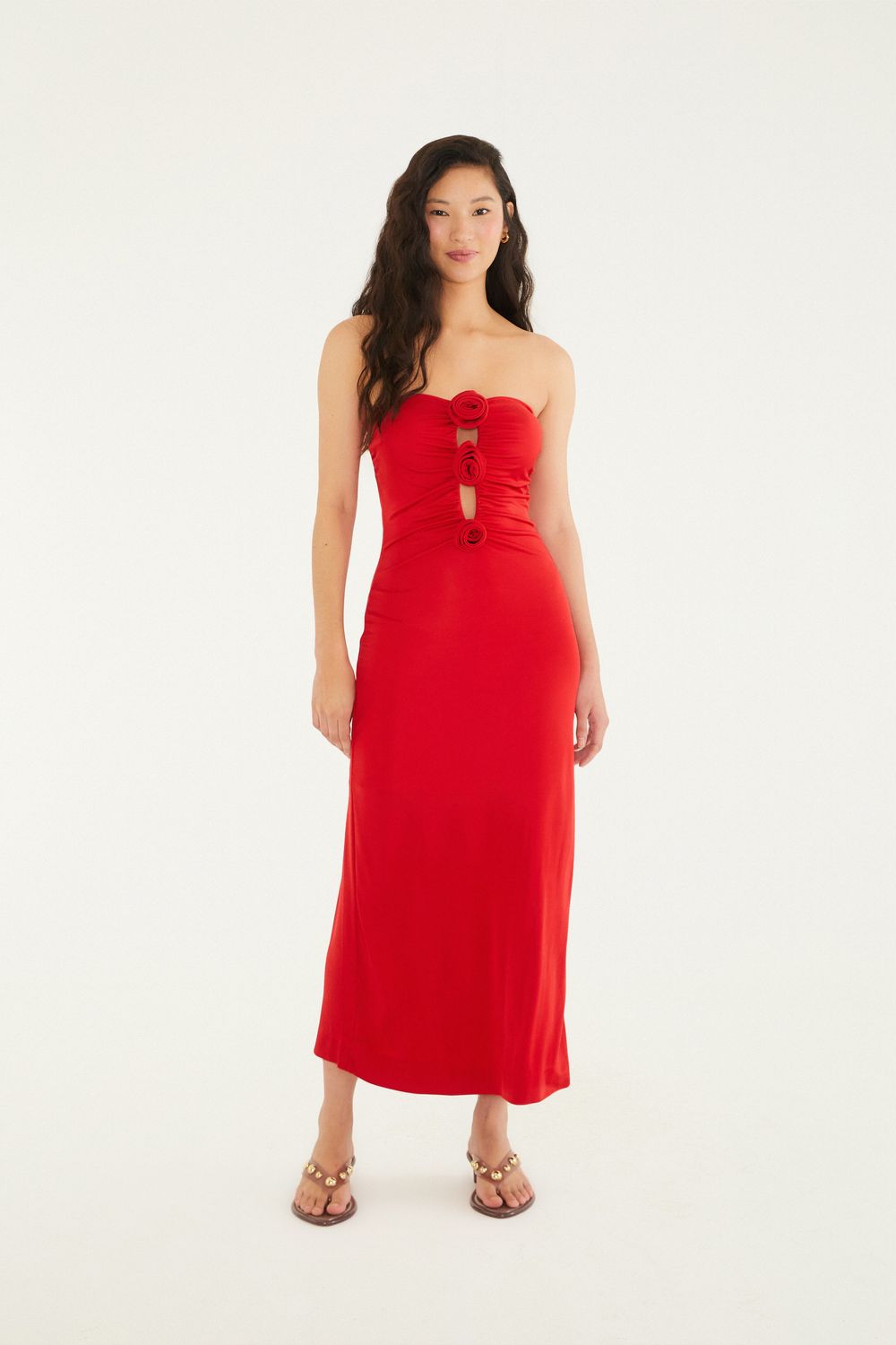 vestido jersey flores decote. traz um charme com seu design sem alças e com ombros à mostra. o detalhe do decote centralizado é arrematado por uma delicada amarração. confeccionado em material leve, oferece movimento fluido e frescor. perfeito para passeios na praia ou encontros casuais. FARM RIO original - alto verão 26.-