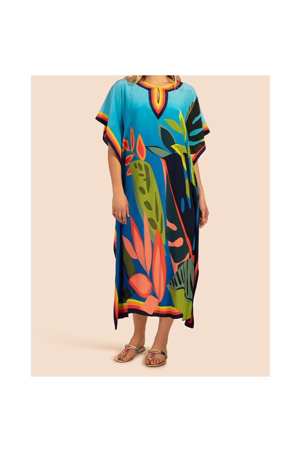 Vestido kaftans com decote v e fendas laterais azul