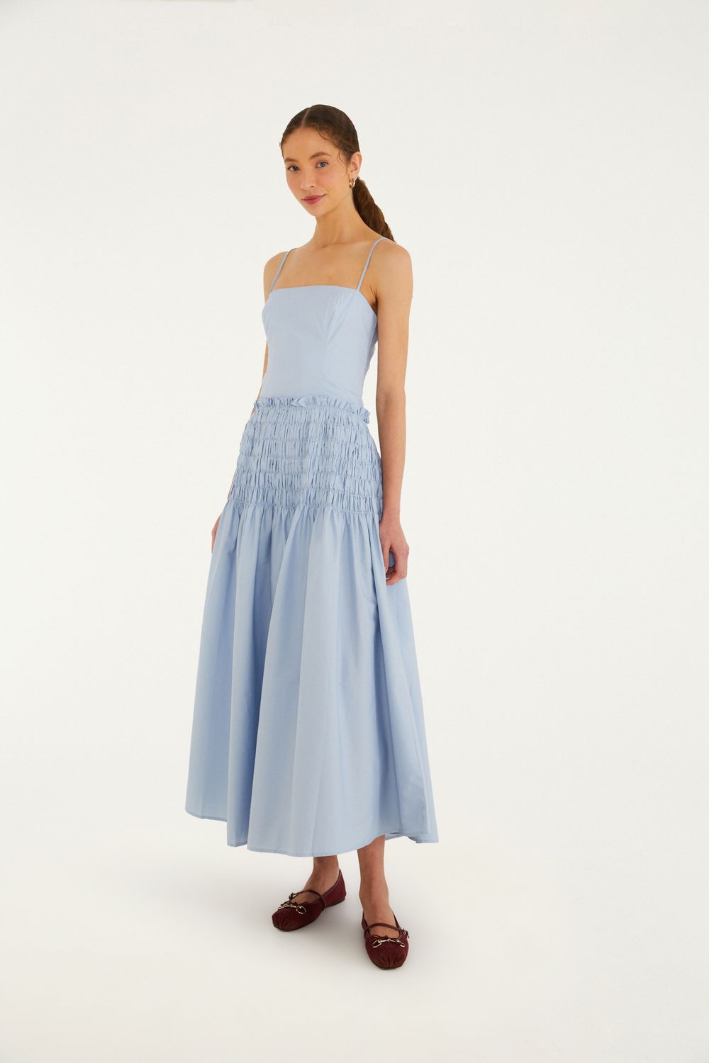 vestido lastex longo, com alças finas e ombros à mostra, realça o charme com o decote reto. confeccionado com lastex no busto, garante conforto e vestibilidade, enquanto a saia fluída em camadas acrescenta leveza ao movimento. perfeito para ocasiões casuais e especiais, é uma peça chave no guarda-roupa. FARM RIO original - alto inverno 25.-