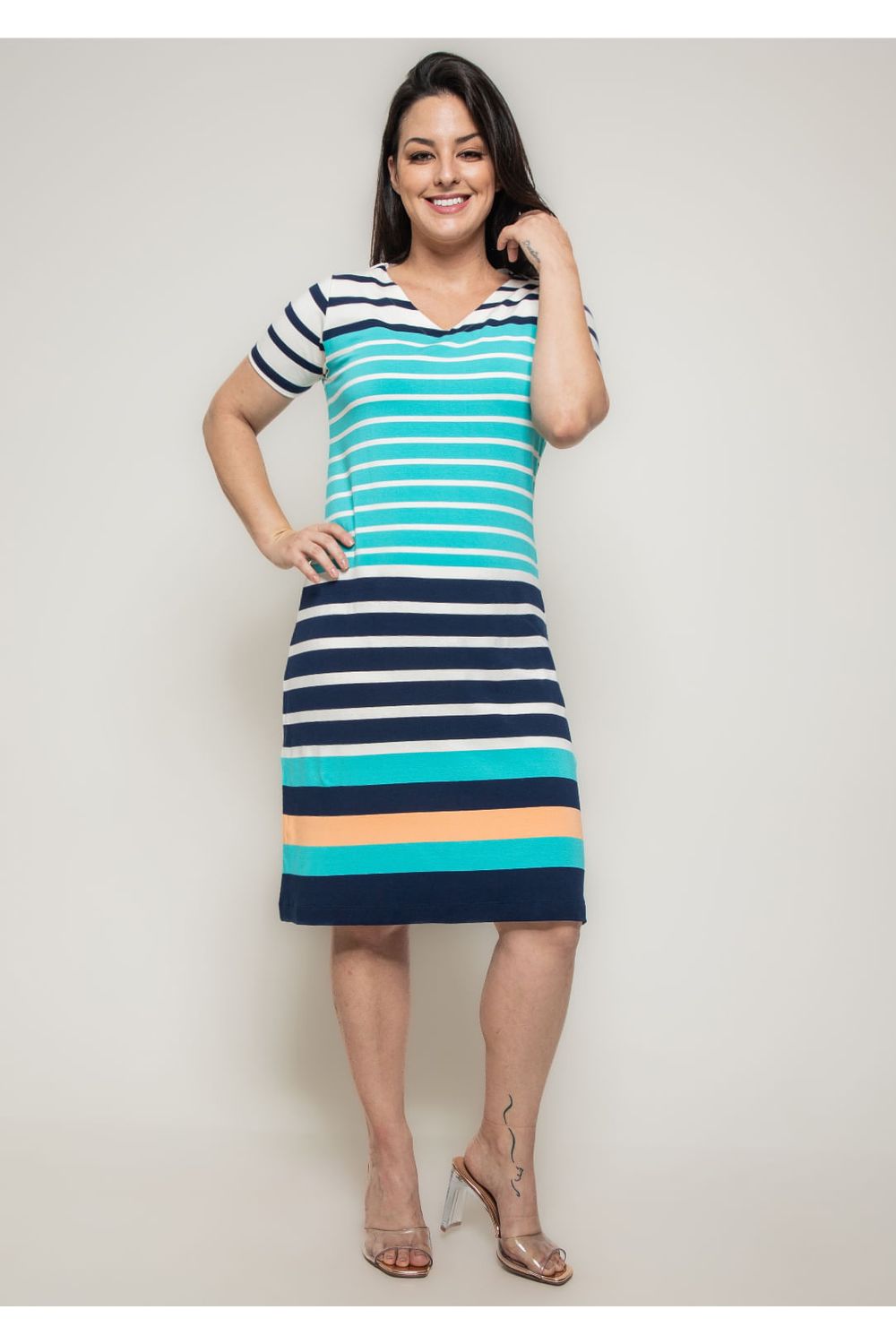 Vestido Listrado Manga Curta Azul e Azul Marinho | Pau a Pique
