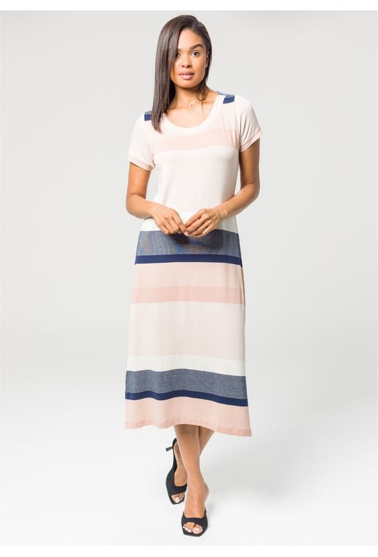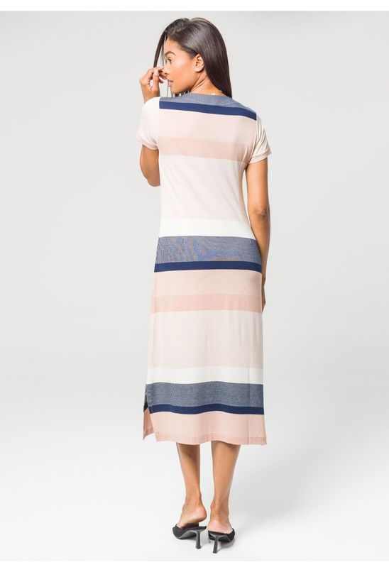 Vestido Listrado Manga Curta Rosê | Pau a Pique