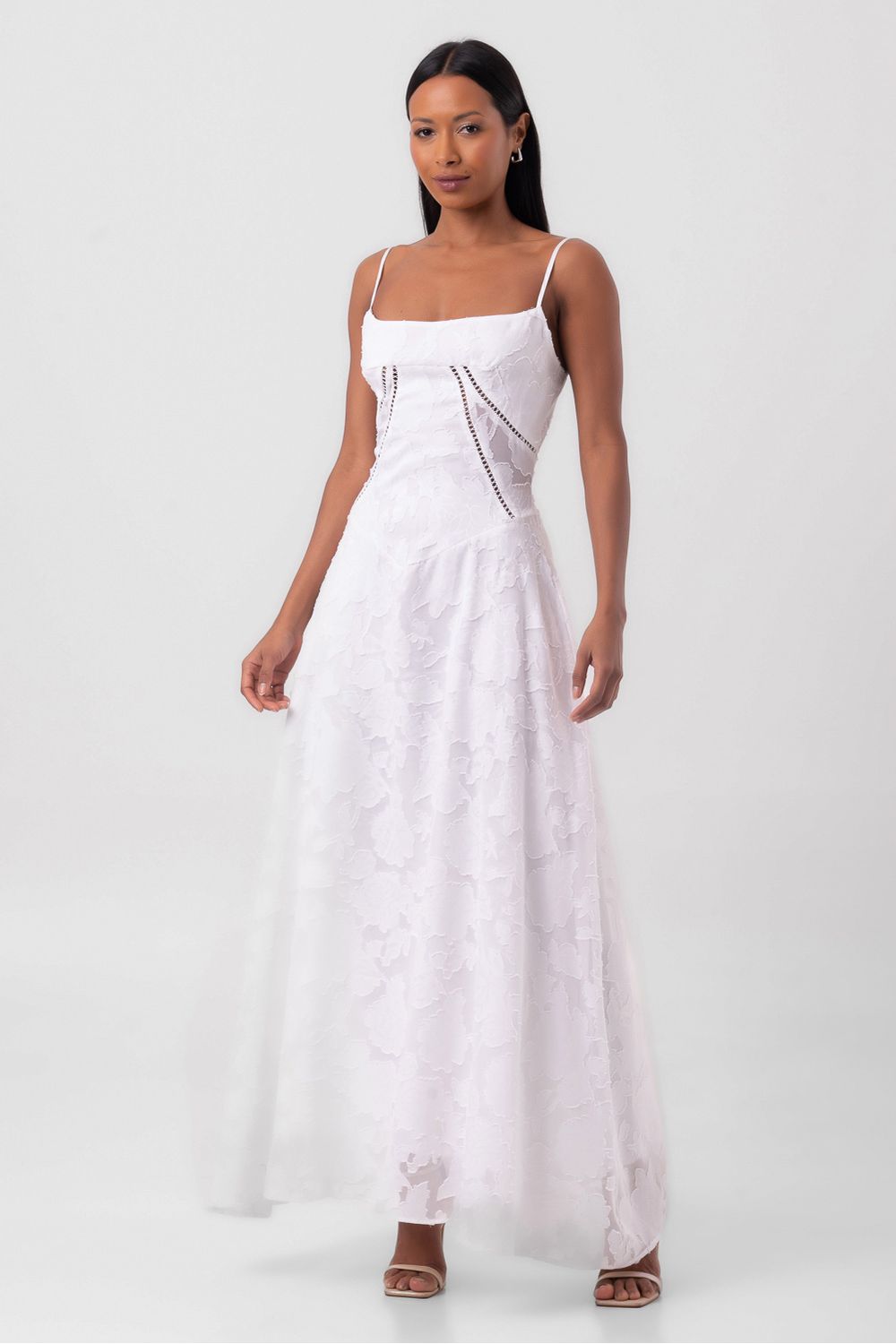Vestido longo borboletas off white Babado