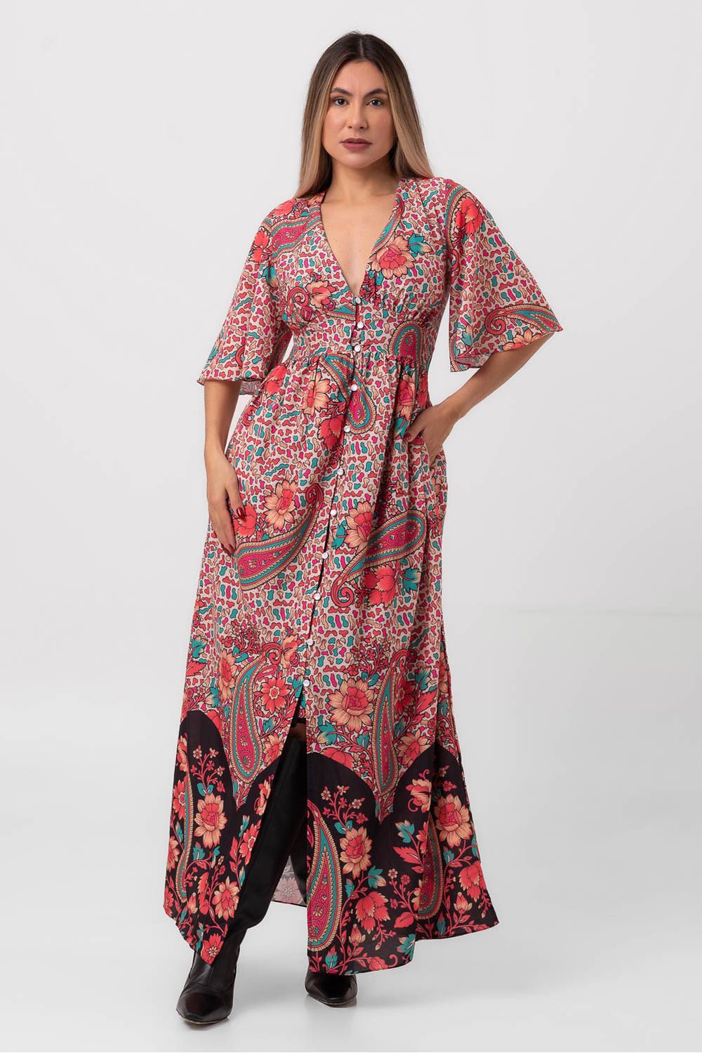 Romântico e leve como um suspiro, o Vestido Longo Pequiá com estampa paisley floral é a escolha perfeita para looks fluidos e cheios de charme. Com botões frontais que adicionam um toque delicado ao visual, a peça se destaca pela sua modelagem confortável e elegante.