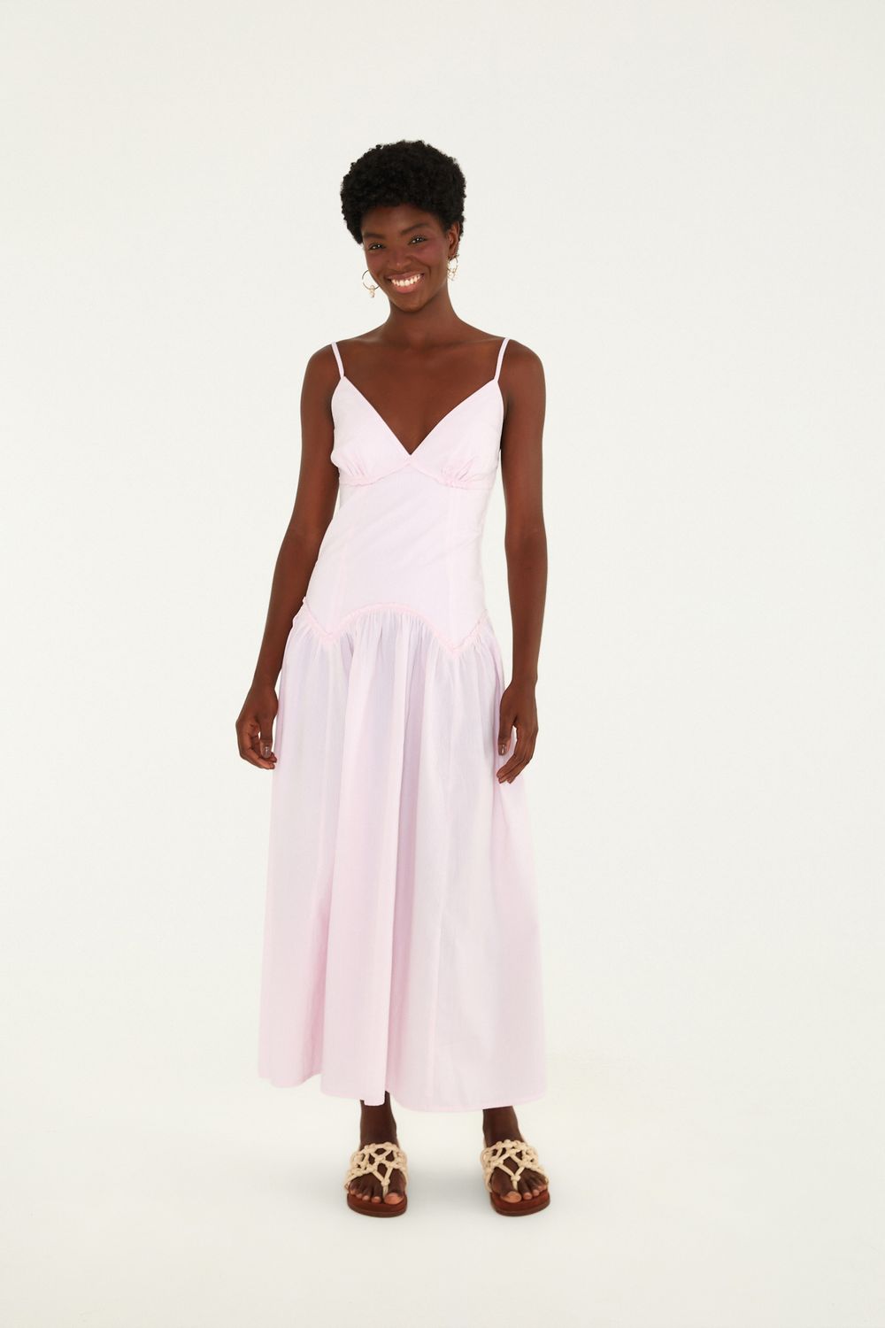 vestido longo decote. com alças finas e um decote em v que destaca delicadamente a parte superior, este vestido é ideal para ocasiões casuais e especiais. sua modelagem fluida e o detalhe no busto proporcionam charme único. perfeito para dias ensolarados ou noites agradáveis. FARM Rio, coleção Carioca - inverno 26.-
