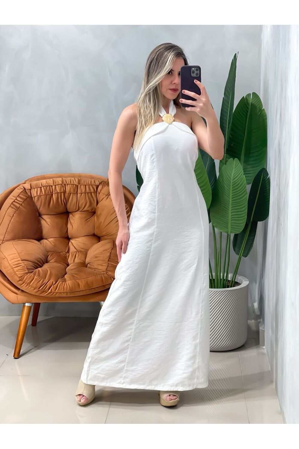 Vestido Longo em Alfaiataria Sensoriale com Amarração e Pedraria Muriel Ref. 1