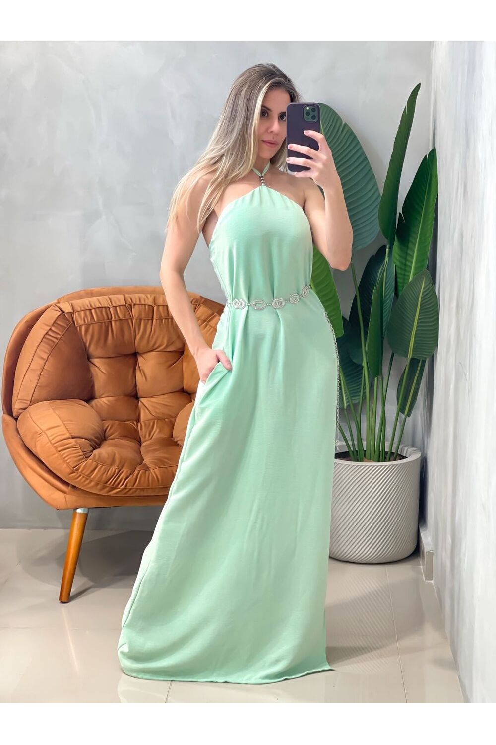 Vestido Longo em Crepe com Fenda e Amarração Adrieli Ref. 1677 - Verde claro - Único