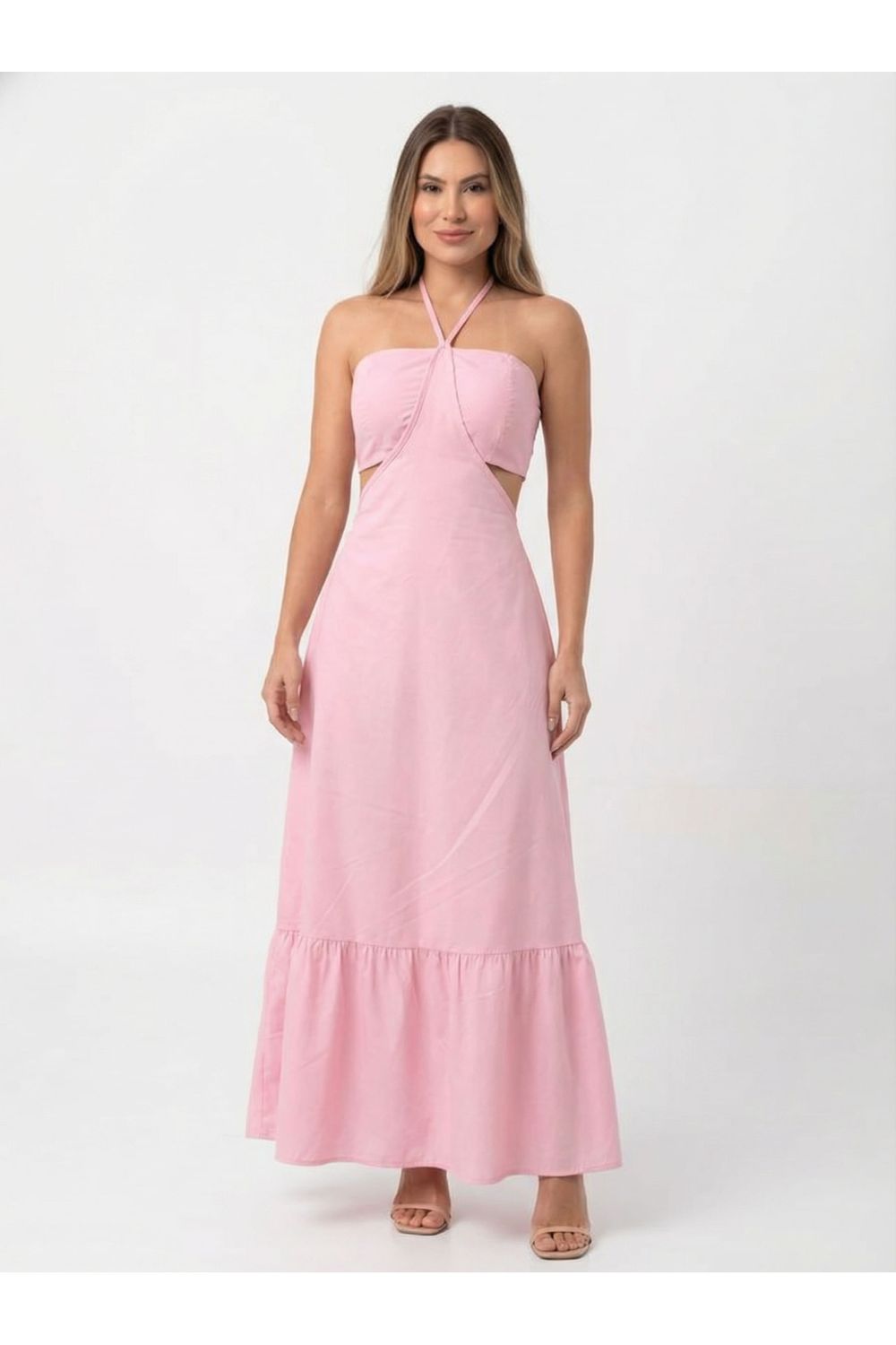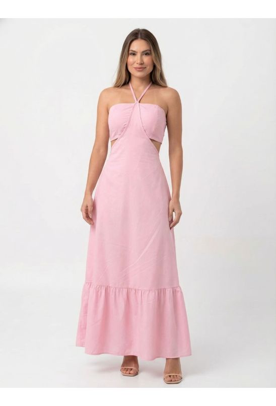 Vestido Longo em Crepe Costas Nua com Amarração Alice Ref. 1779 - Rosa claro - Único