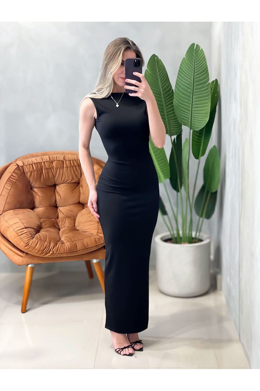 Vestido Longo em Ribana Regata Costas Nua Rafaela Ref. 1667 - Preto - Único
