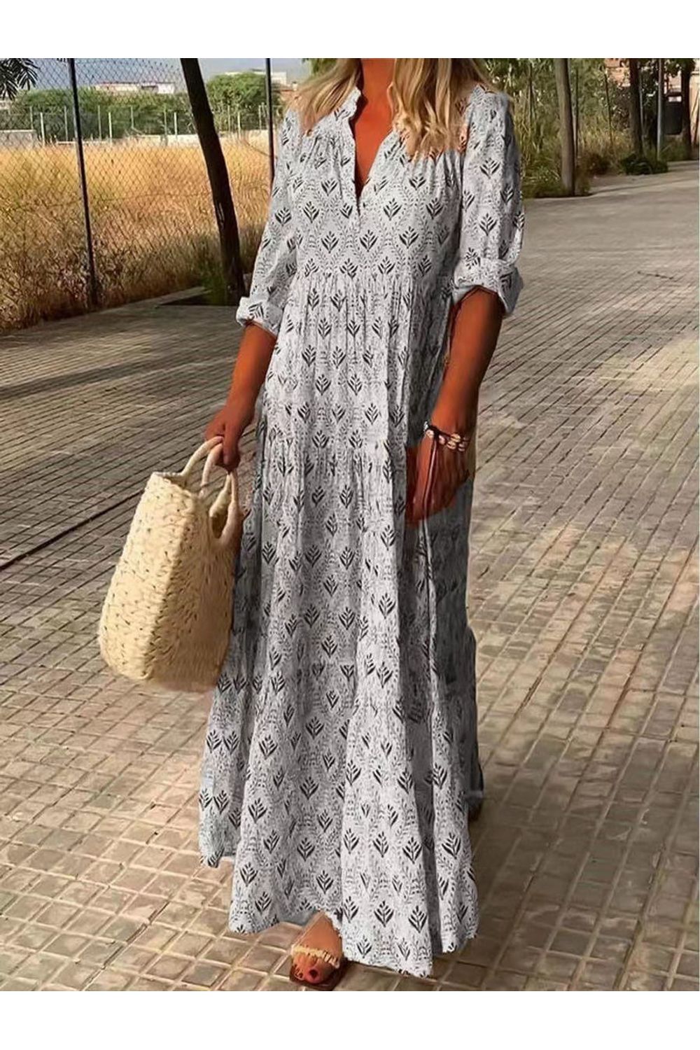 Este deslumbrante vestido combina elegância e estilo de maneira encantadora. Com uma estampa floral feminina e atemporal, a peça apresenta uma modelagem solta e confortável, perfeita para ocasiões especiais e festas. As mangas compridas adicionam um toque de sofisticação, enquanto o decote V destaca a feminilidade.