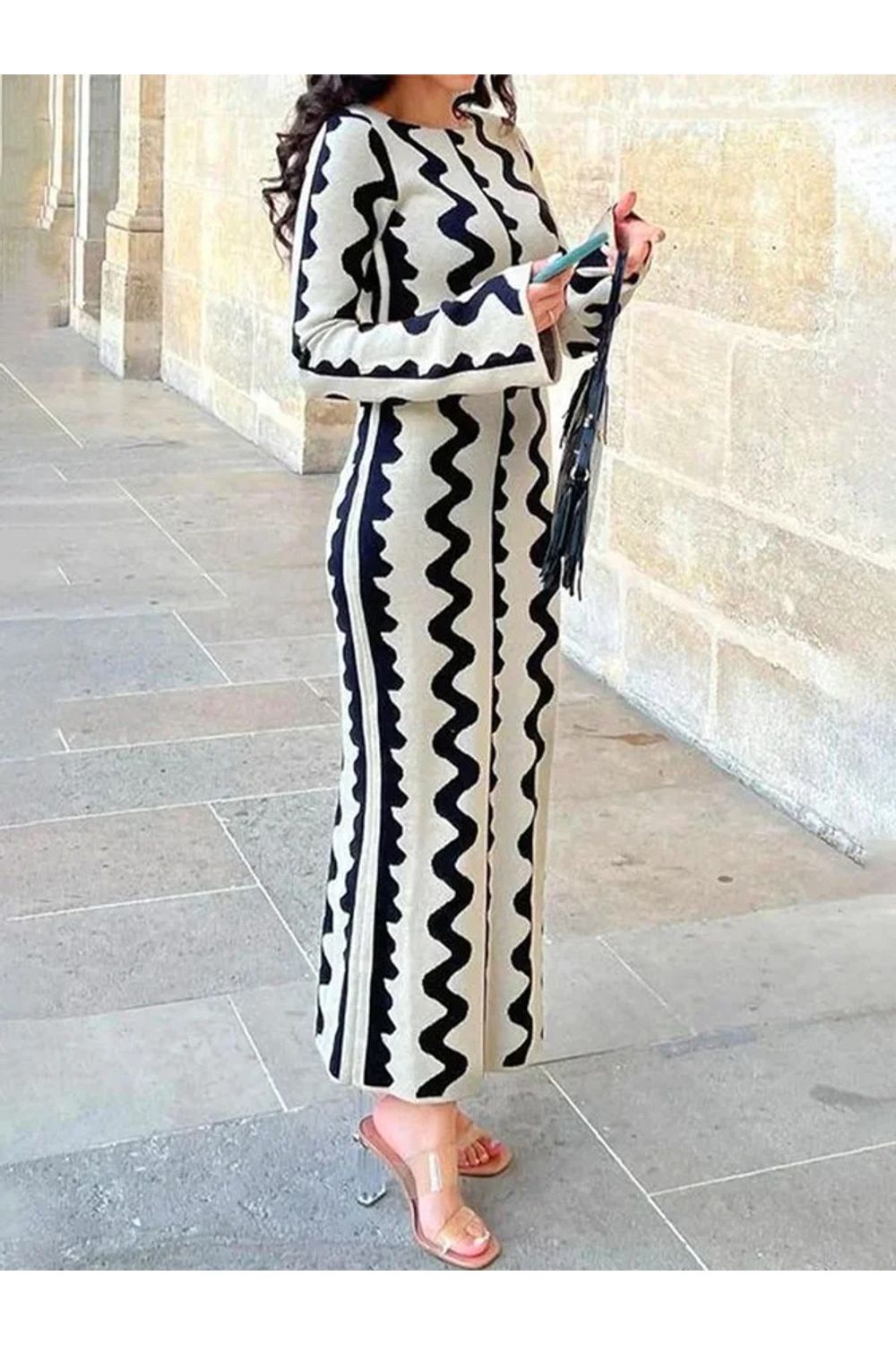Vestido longo fashion slim estampado branco