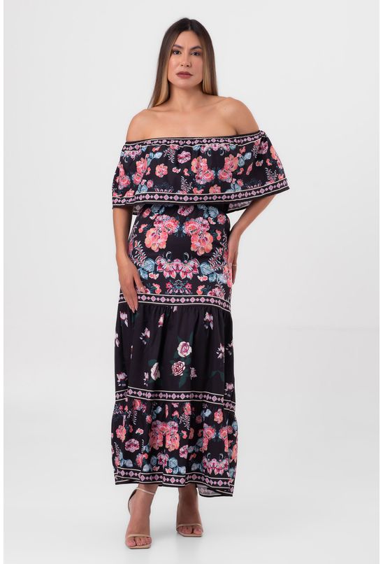 Nome: vestido longo floral ombro a ombro preto