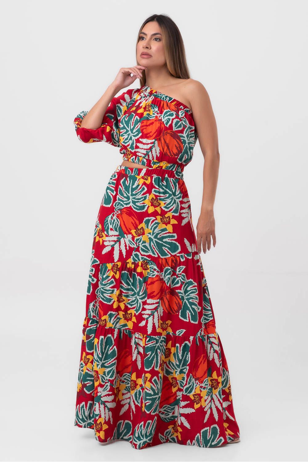 Vestido longo floral tropicália pequiá
