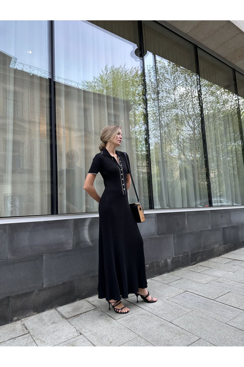 Vestido longo gola polo botões frontais preto