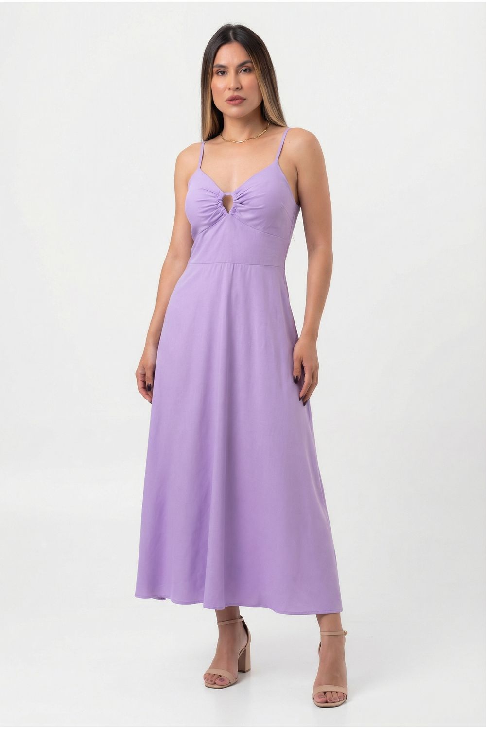 nome: vestido longo liso decote nó
