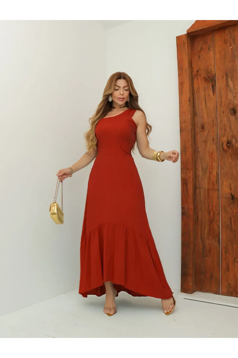 Vestido longo liso ombro único
