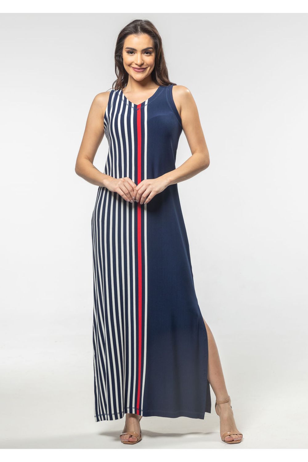 Vestido Longo Pau a Pique Regata listrado Azul Marinho