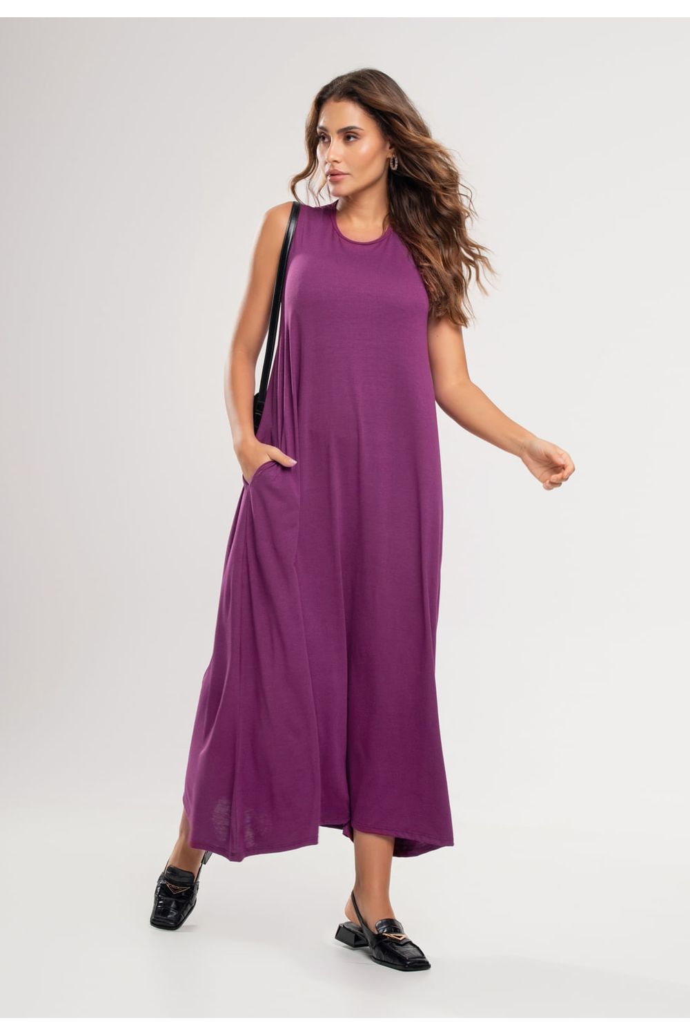 Vestido Longo Regata Com Bolsos Roxo Salvatore