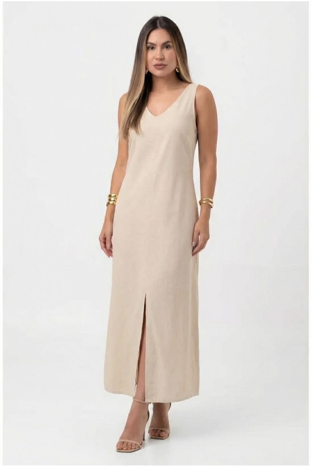 nome: vestido longo reto de linho com bolso.
