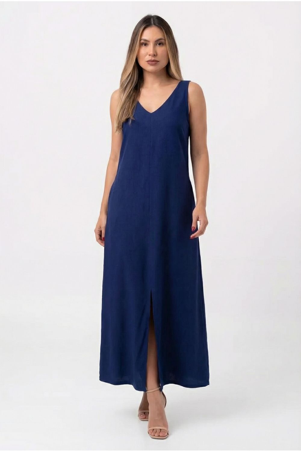 nome: vestido longo reto de linho com bolso.