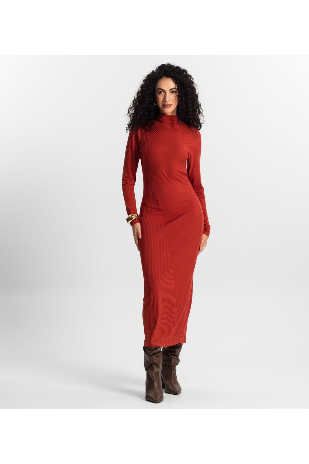 O Vestido Feminino Rovitex é a escolha ideal para quem busca sofisticação e conforto em uma única peça. Confeccionado em Ribana Canelada de Viscose, oferece um caimento ajustado e toque macio, perfeito para diversas ocasiões. Seu design conta com gola alta, que adiciona um toque elegante e moderno, além de manga longa, ideal para os dias mais frescos. O comprimento midi garante um visual sofisticado, e o recorte com sentido das listras na diagonal cria um efeito visual alongador e estiloso-