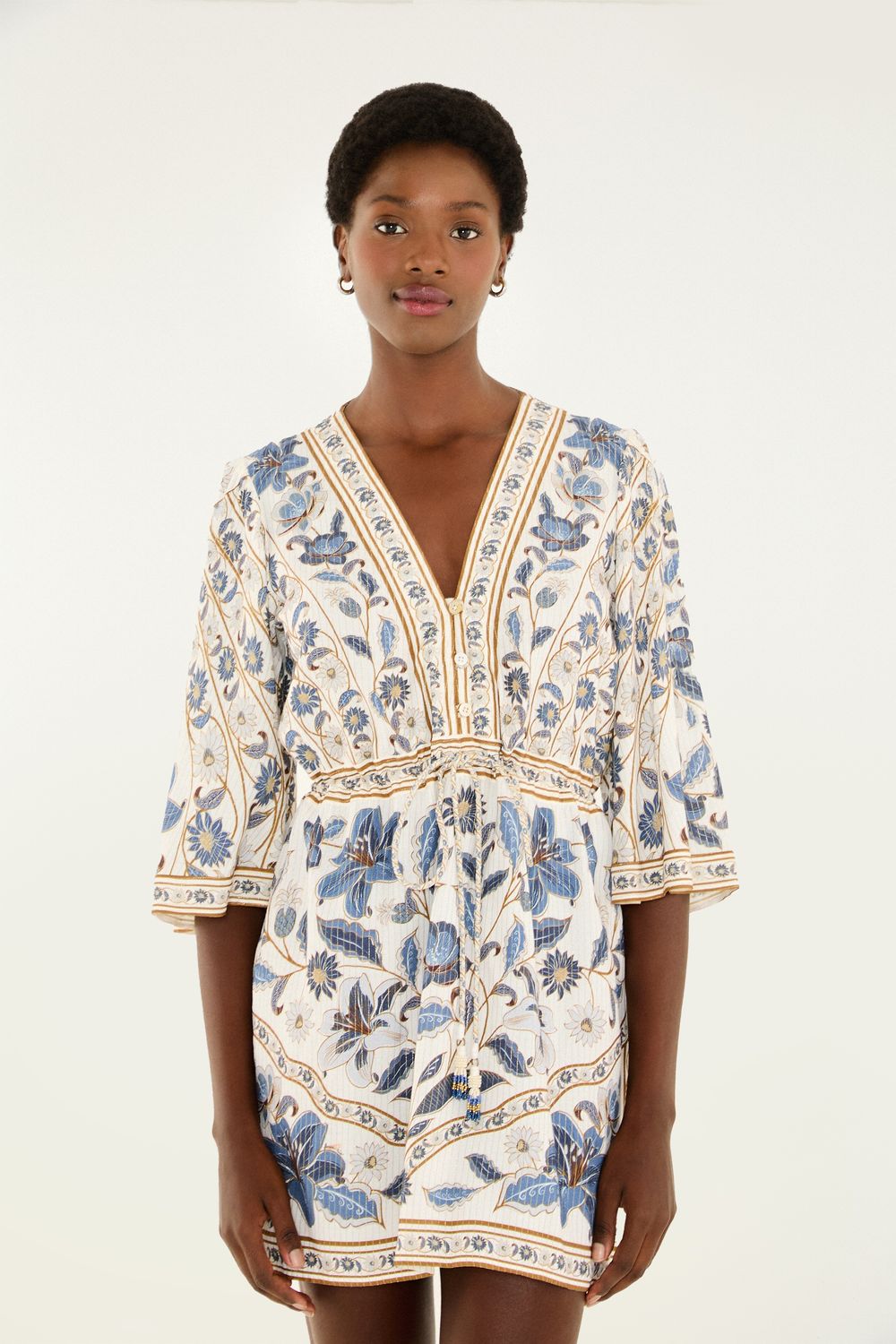 vestido manga marcelle oferece um decote em v com detalhes encantadores, trazendo um toque exclusivo à peça. as mangas são amplas, proporcionando conforto e um visual diferenciado. ideal para ocasiões casuais, com expressão única e estilo autêntico, perfeito para o dia a dia. FARM RIO original - alto inverno 25.-