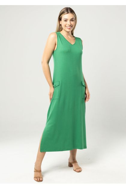 Decote em "V" e alças largas. Sem estampa, na cor Verde.