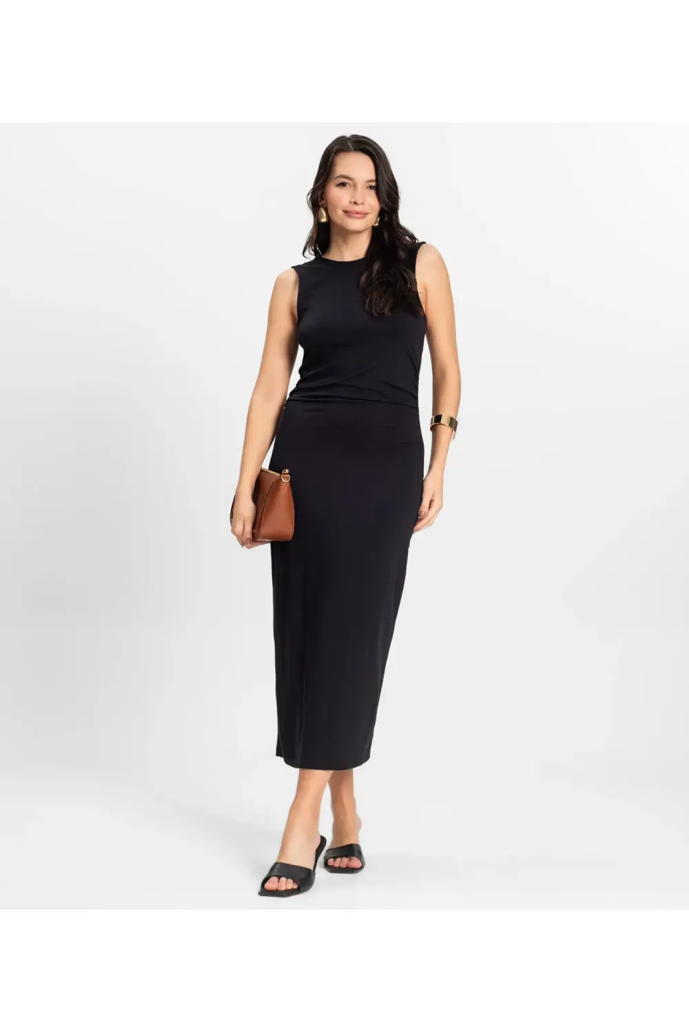 Vestido Midi em Molecotton de Viscose Rovitex Preto