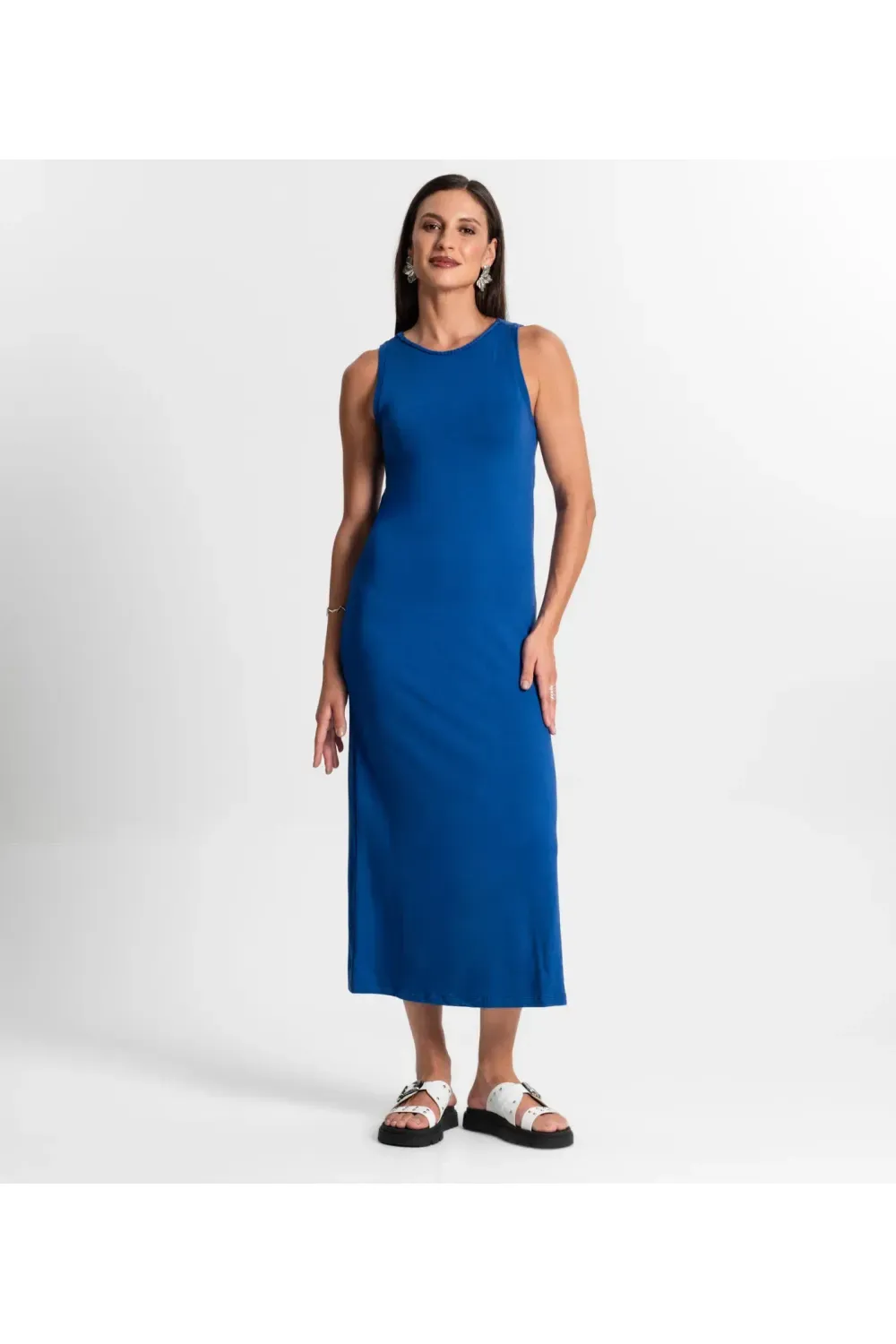 Vestido Midi Em Molecotton Rovitex Azul
