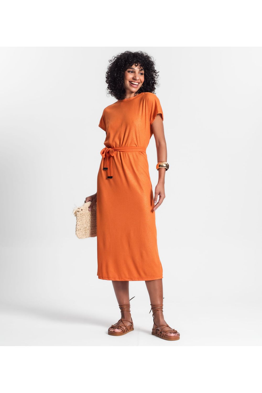 Vestido Midi Em Ribana Canelada Lurex Rovitex Laranja