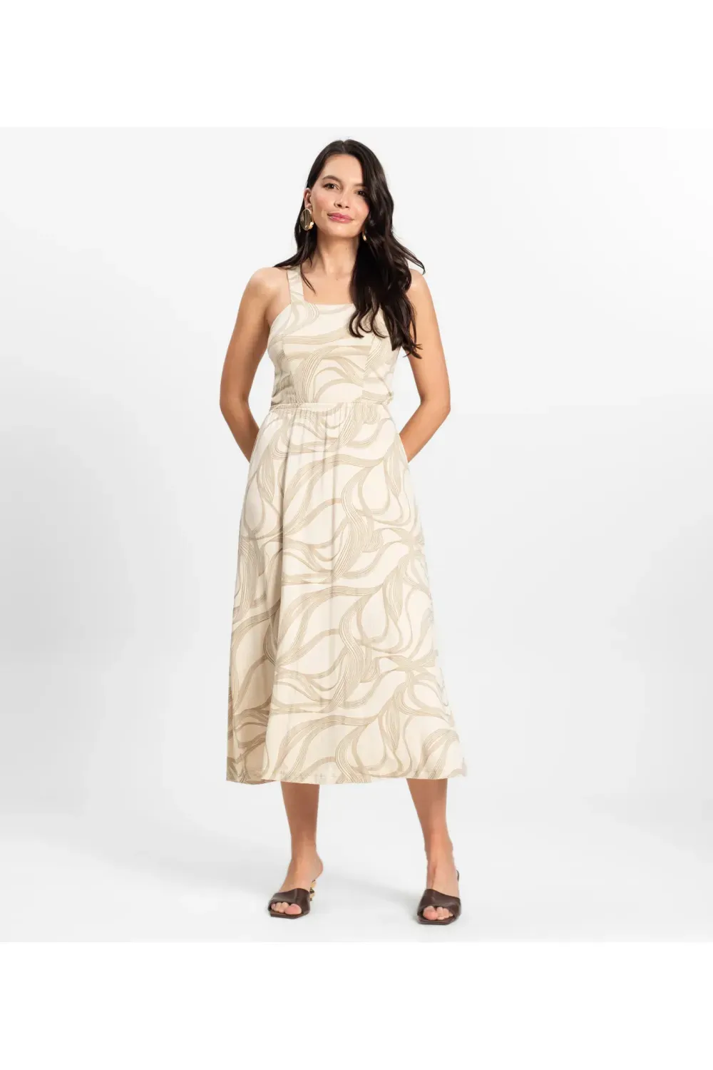 Vestido Midi em Viscotorcion Rovitex Bege