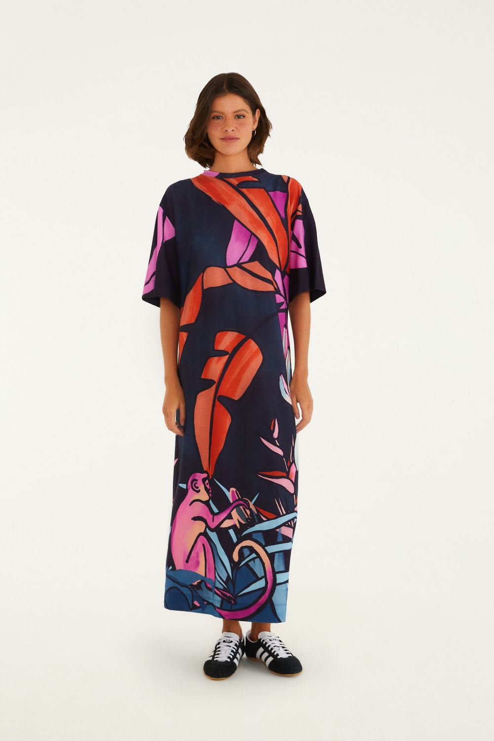 Vestido Midi Estampado Banana Flora