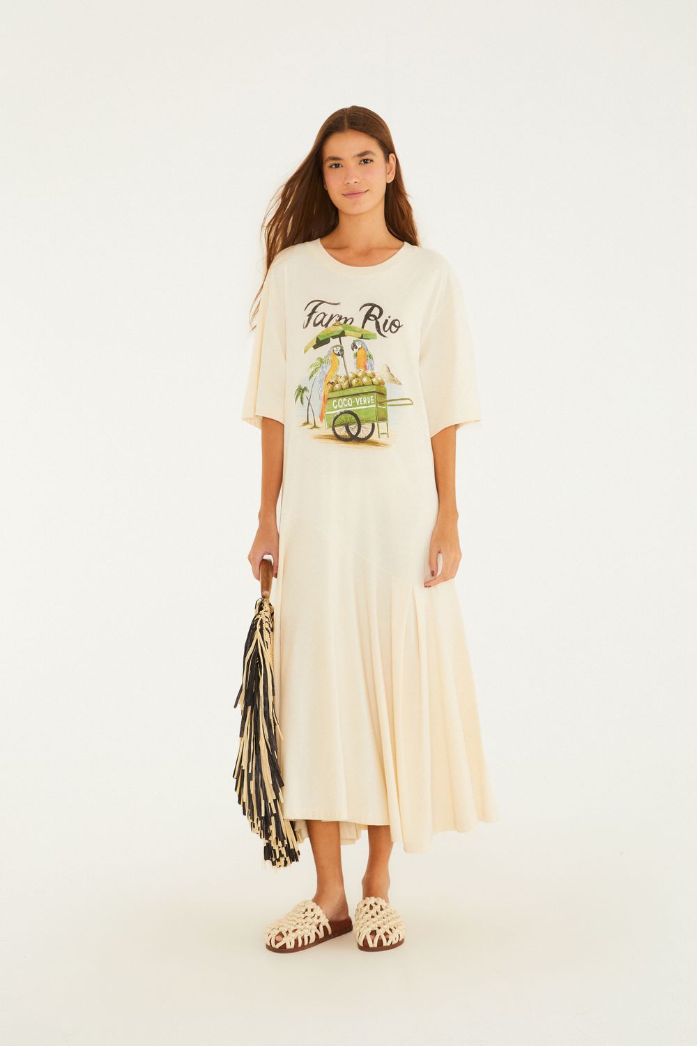 vestido midi carrinho de coco. com corte fluido e movimento leve, traz manga curta que oferece conforto e estilo casual. o decote redondo valoriza o visual despretensioso, enquanto o tecido de toque suave garante conforto em qualquer ocasião. ideal para passeios ao ar livre ou encontros casuais. FARM Rio, coleção Carioca - inverno 26.-