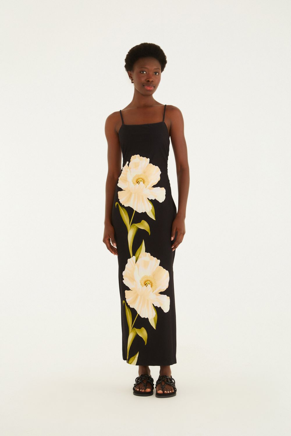 vestido midi papoula é a peça perfeita para transformar qualquer ocasião em um momento especial. com alças finas e decote reto, ele traz um toque de leveza e charme ao seu visual. seu corte fluido com fendas laterais garante conforto e liberdade de movimento. ideal para um jantar casual ou um passeio ao ar livre. FARM Rio, coleção Carioca - inverno 26.-