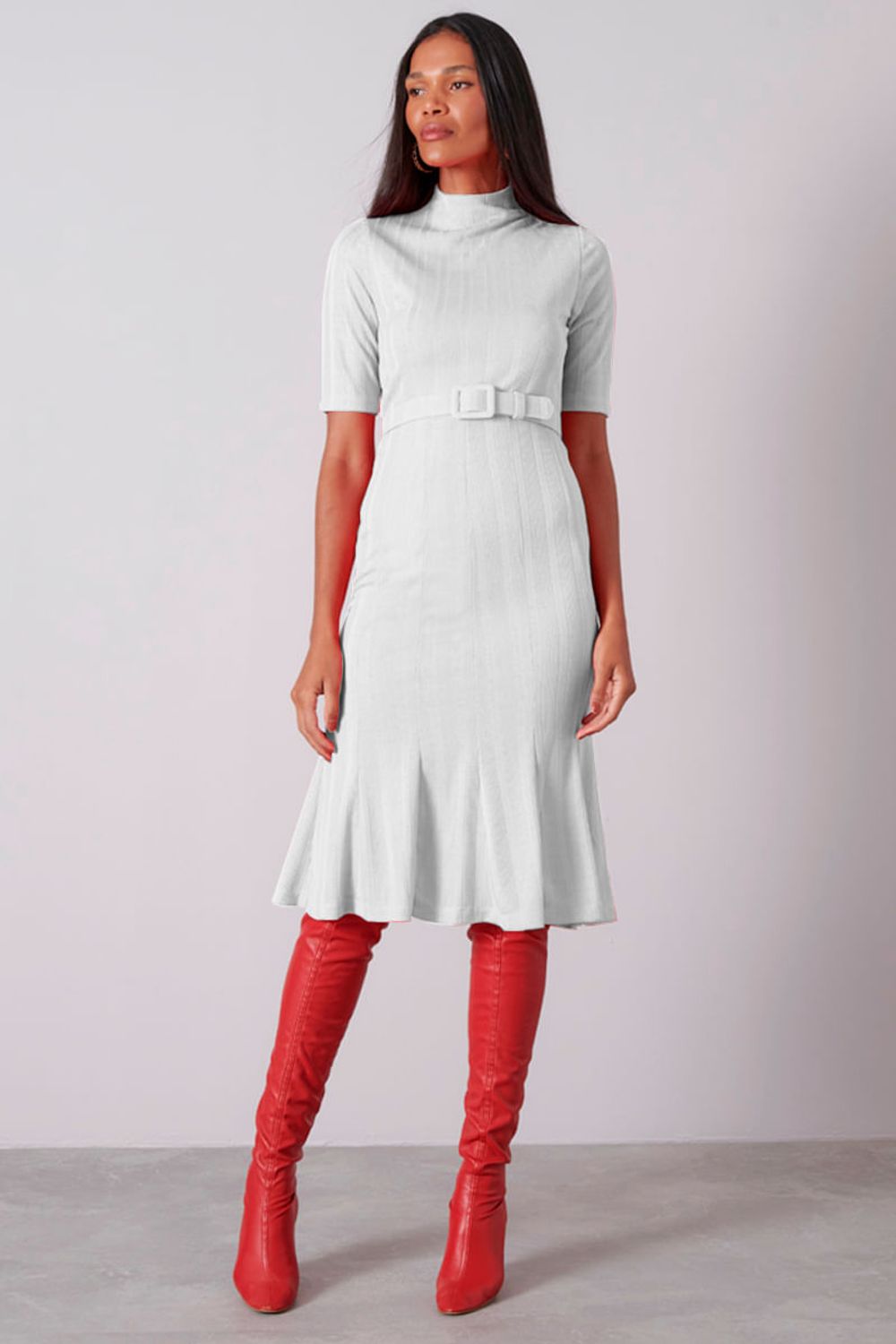 Vestido Midi Gola Smk Off White