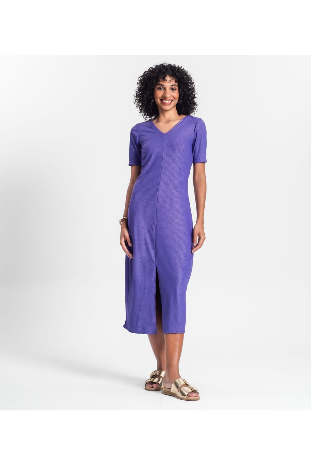Vestido Midi Ribana Canelada Lurex Rovitex Roxo