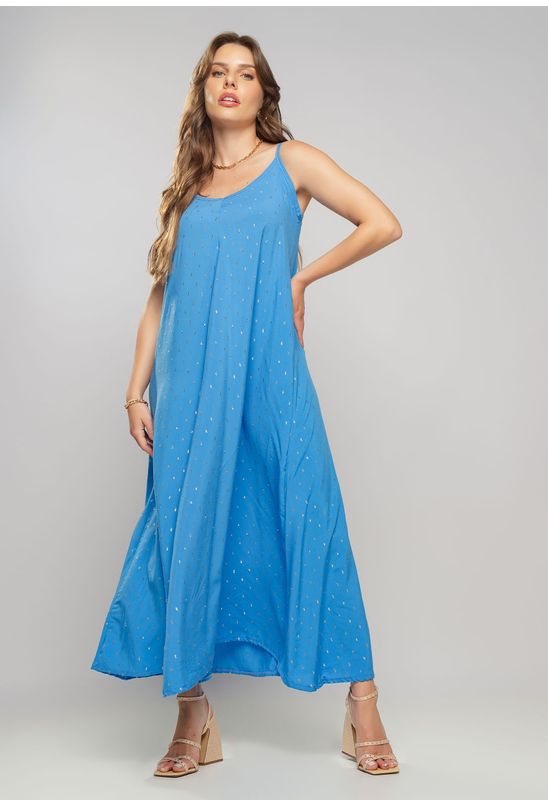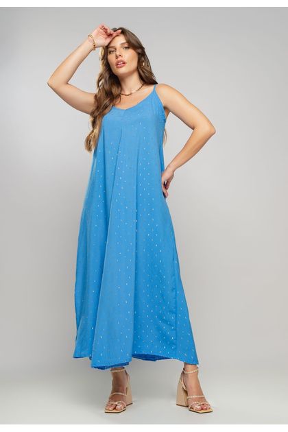 Vestido Midi Viscose Com Lurex Com Amarração Azul Salvatore Fashion