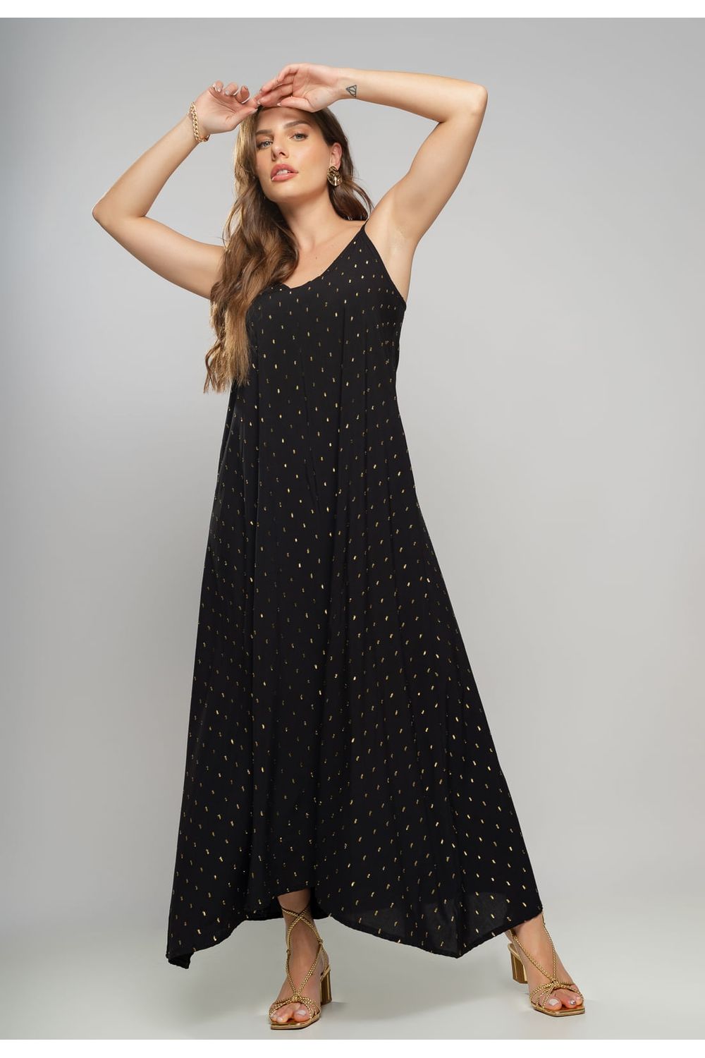 Vestido Midi Viscose Com Lurex Com Amarração Preto Salvatore Fashion