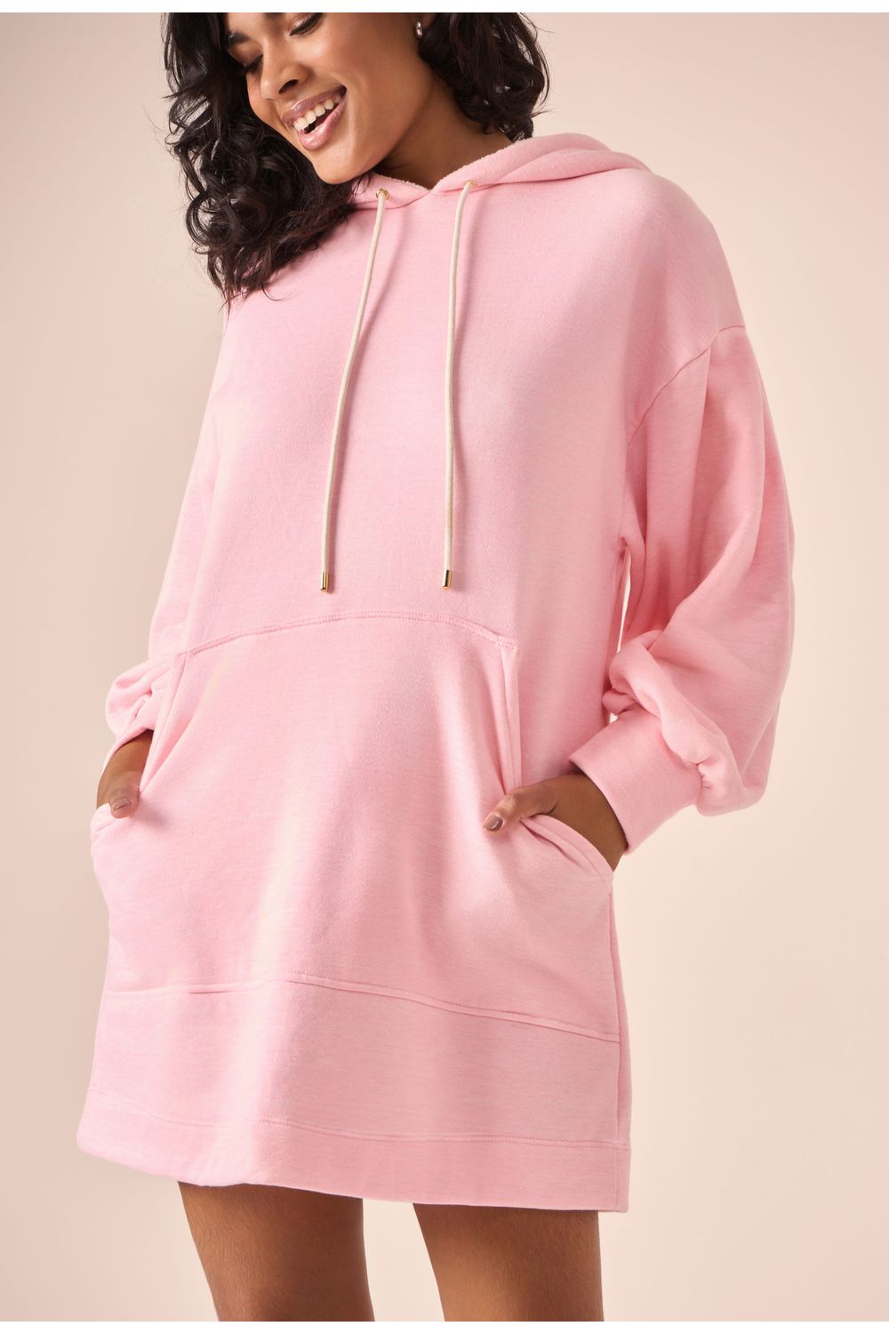 o vestido fleece foi pensado para proporcionar o maximo conforto. Uma peça casual para os dias mais frios. Com tecido peluciado por dentro, capuz e bolso canguru. Uma graça, jovial e descolado.-