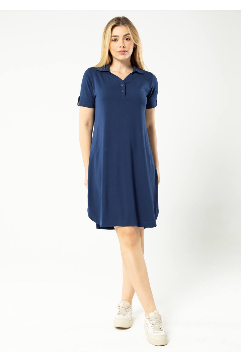 Vestido Polo na cor Azul Marinho. Peça indispensável no guarda roupa feminino.