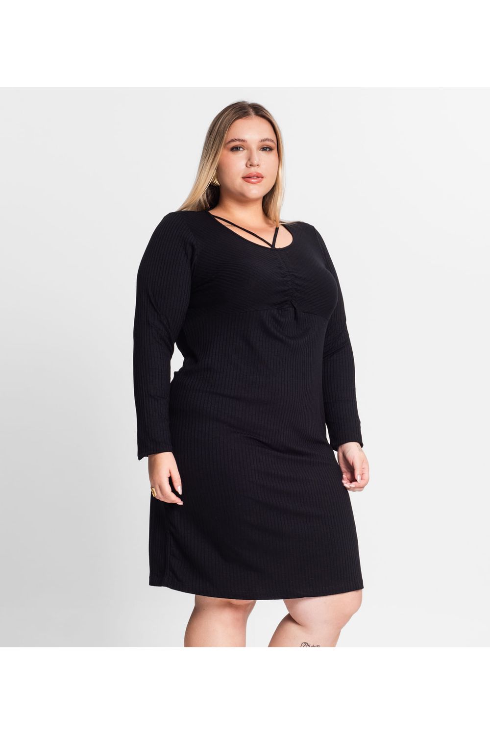 O Vestido Plus Size Em Ribana Canelada Secret Glam é uma peça versátil e moderna. Confeccionado em ribana canelada, oferece conforto e estilo. Destaque para o busto com ribana na diagonal, que adiciona um toque diferenciado ao design. Ideal para compor looks casuais ou mais formais, é perfeito para diversas ocasiões. Combine-o com acessórios simples para um visual descontraído ou adicione saltos e joias para uma produção mais sofisticada. Confortável e estiloso, é uma escolha perfeita.-