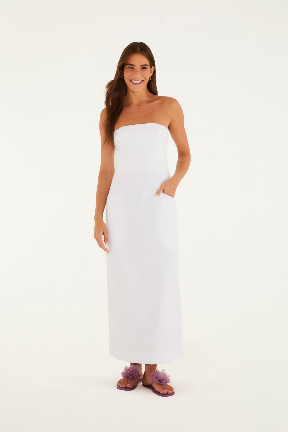 vestido reto alfaiataria. sem alças e com corte preciso, essa peça traz um toque contemporâneo ao clássico. o acabamento de alfaiataria é impecável, garantindo caimento perfeito. ideal para ocasiões formais ou um jantar casual, sempre com muito estilo. FARM RIO original - alto inverno 25.-