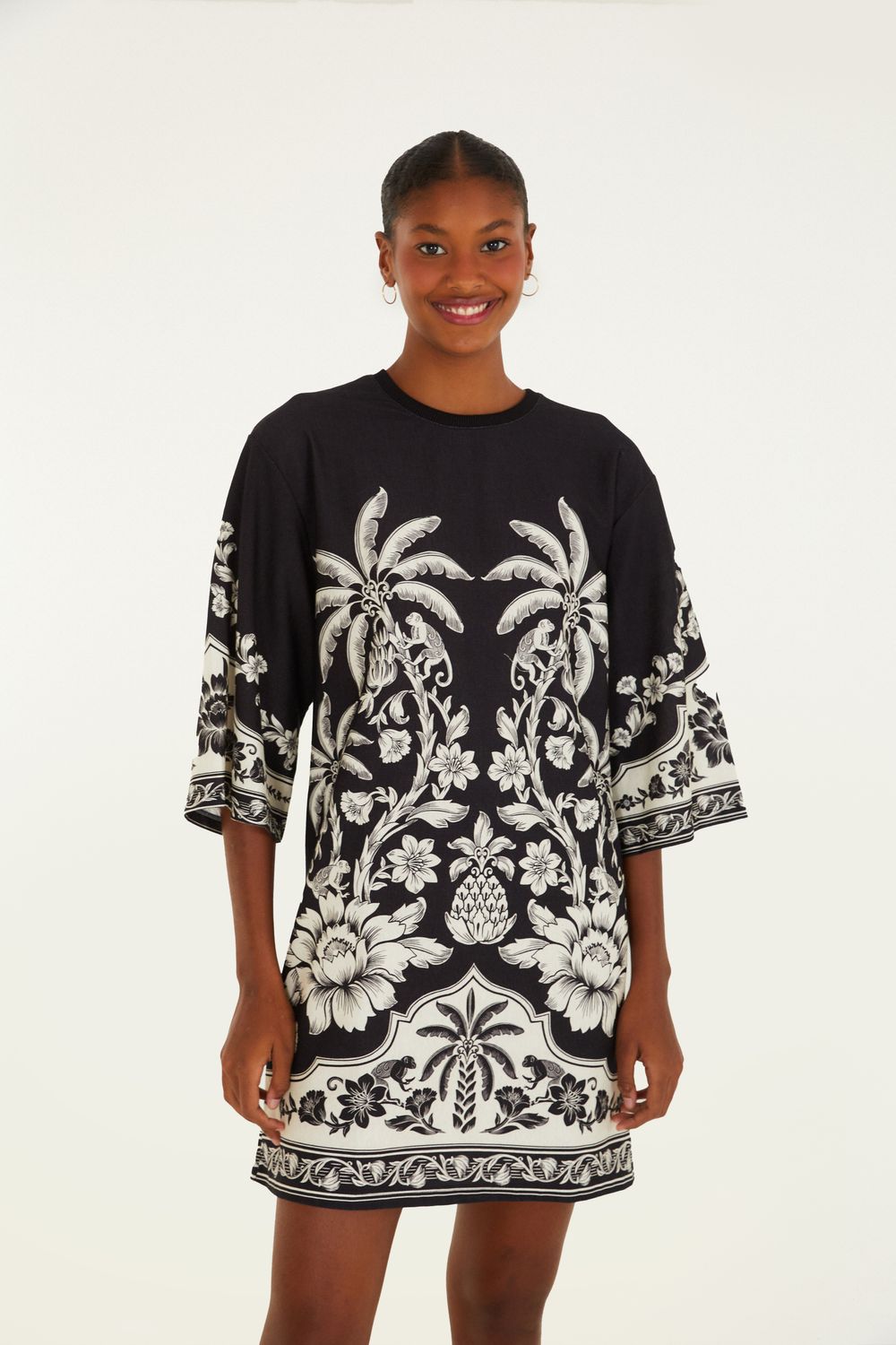 vestido t-shirt big estampado guanacaste. com um corte solto e mangas amplas, esse vestido proporciona conforto e estilo em uma única peça. perfeito para momentos casuais, o decote fechado e o comprimento acima do joelho oferecem praticidade e leveza. FARM RIO original - verão 26.-