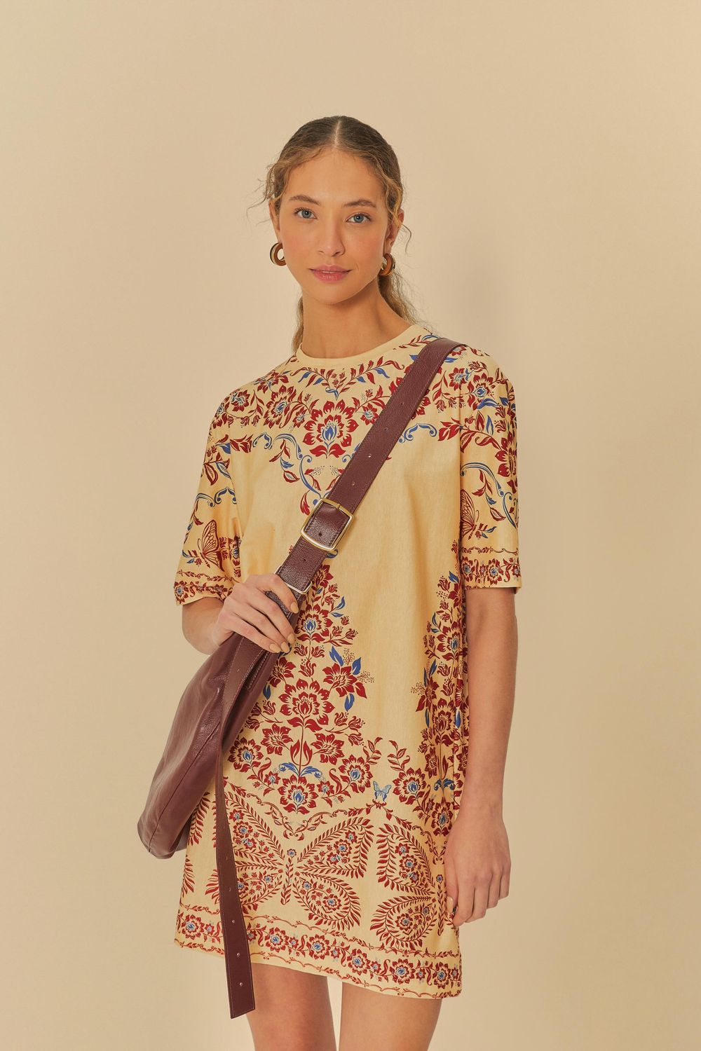 vestido t-shirt estampado borbolina. com modelagem reta e mangas curtas, este vestido tem decote redondo e detalhes que trazem leveza e originalidade. ideal para um visual casual e confortável, ele se adapta a diferentes ocasiões, desde um passeio ao ar livre até um encontro descontraído. FARM RIO original - inverno 25.-