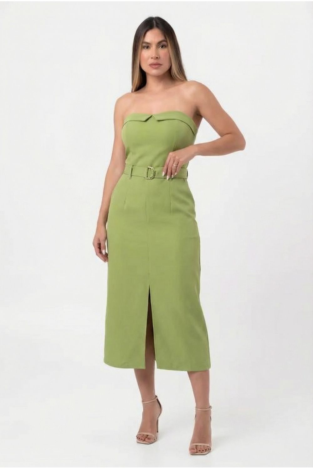 nome: vestido tomara que caia com cinto tecido alfaiataria