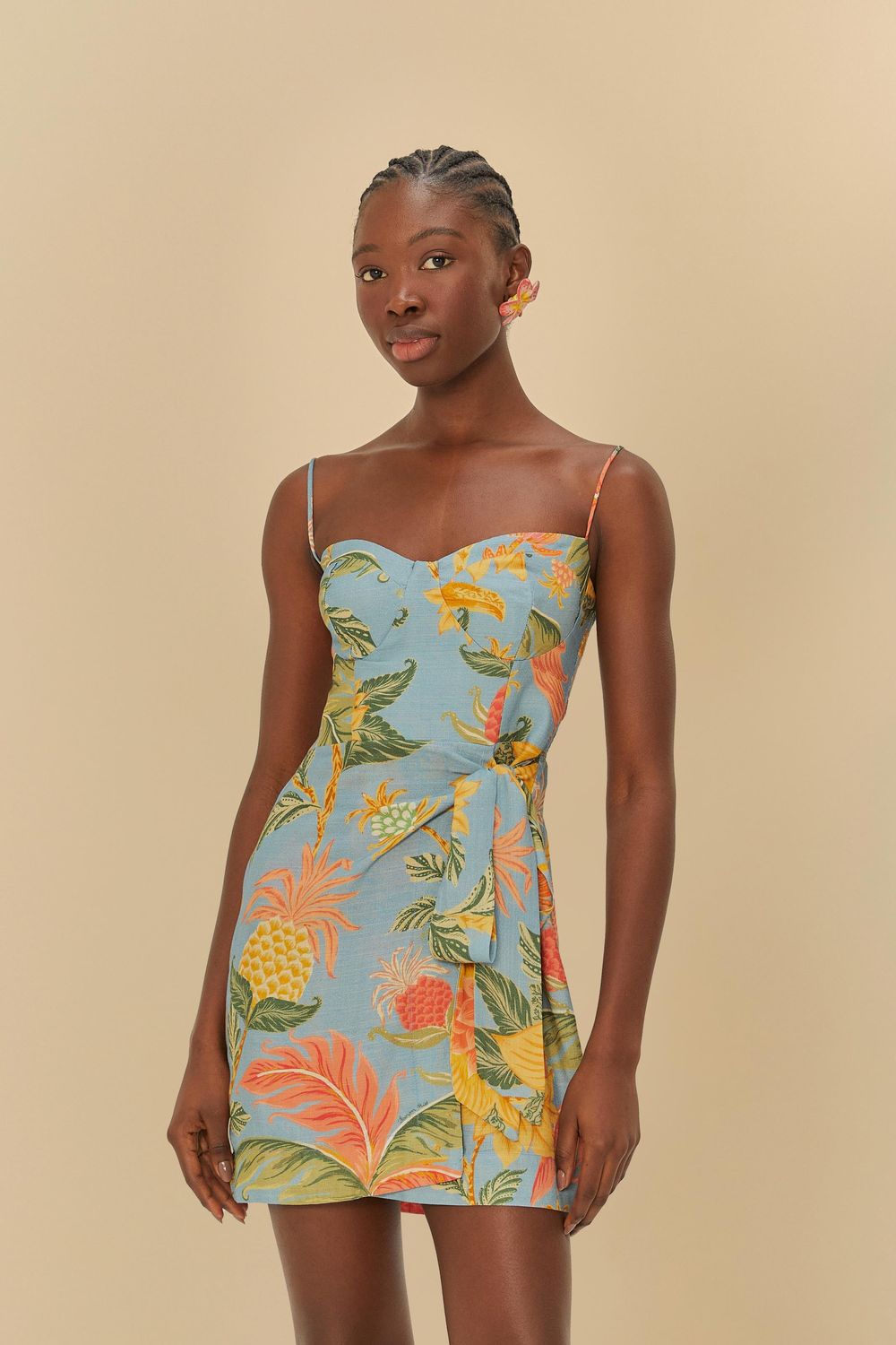 vestido transpassado amalfi. destaque com decote transpassado, que traz um charme único à peça, e alças finas. com ajuste confortável e comprimento que valoriza o movimento, ele se adapta a ocasiões casuais. ideal para dias ensolarados, o design colorido eleva qualquer visual. FARM RIO original - inverno 25.-
