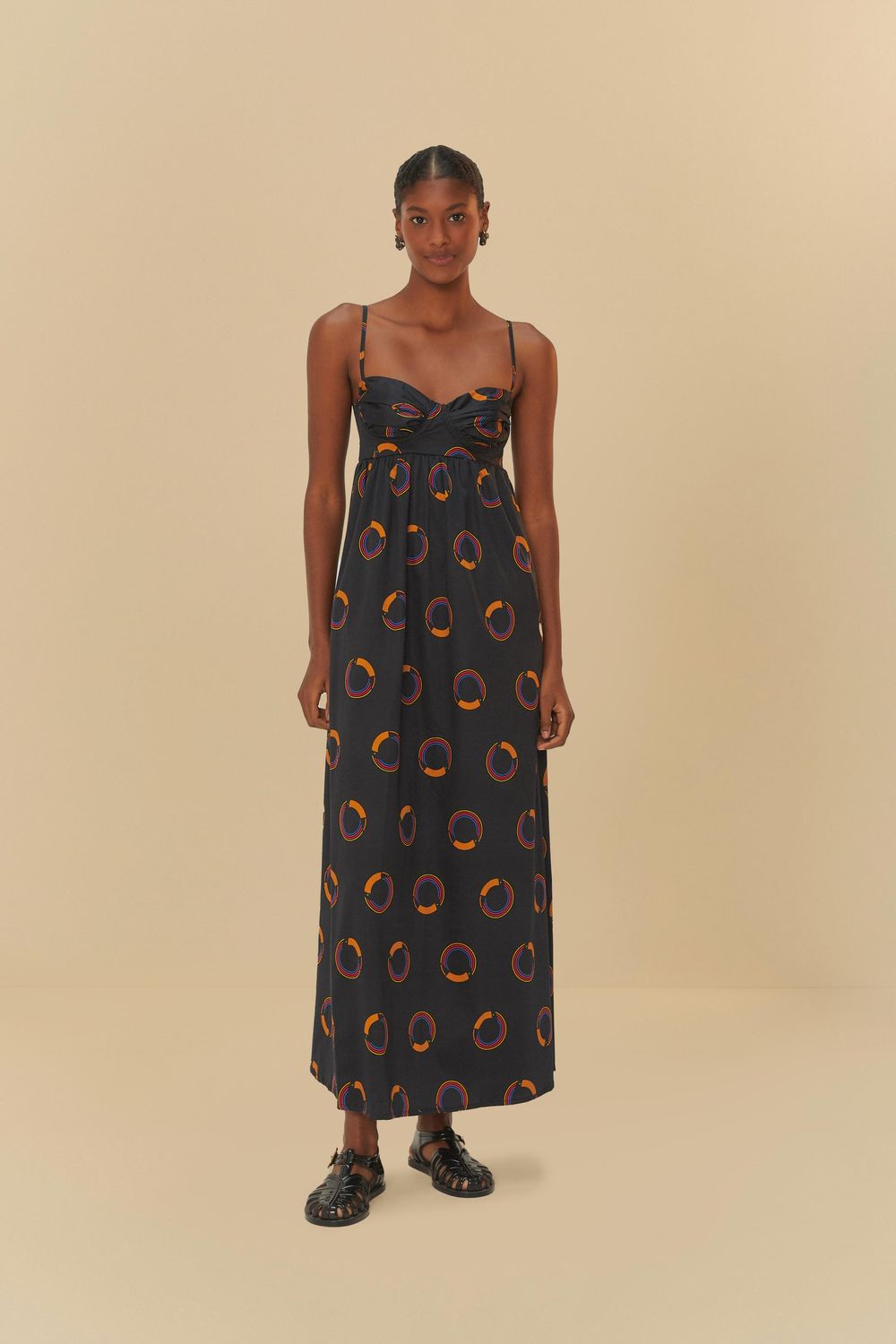 vestido tuca poá. modelagem fluida, com alças finas ajustáveis que permitem um caimento perfeito e decote em coração, destacando o colo com delicadeza. o corte longo e o tecido leve proporcionam movimento suave, ideal para compor looks casuais ou sofisticados em diferentes ocasiões. FARM RIO original - inverno 25.-