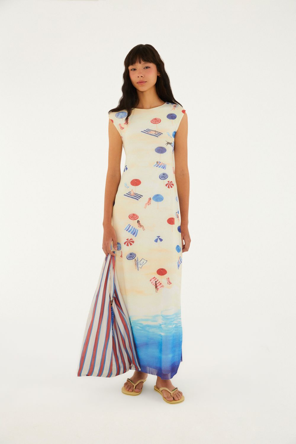 vestido tule estampado praia do poá. traz um decote discreto combinado com alças médias e corte fluido, ideal para momentos casuais. confeccionado em tecido leve, é perfeito para curtir dias ensolarados com conforto e estilo. um toque de originalidade que se destaca em qualquer ocasião. FARM RIO original - alto verão 26.-